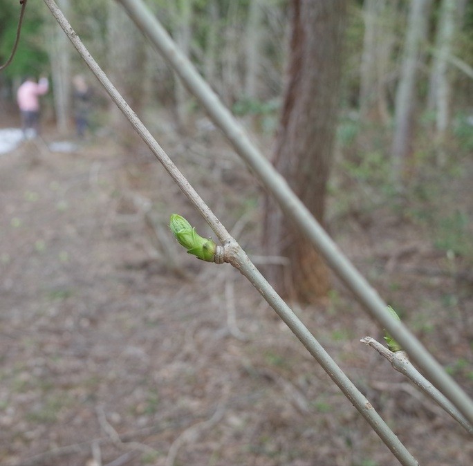 コシアブラは数メートルから20mくらいになるという樹木です。WiKiによるとウコギ科ウコギ目の落葉高木とのことですが、そんなことはさておき、春先に出る新芽がとっても美味であることを知っておいて損はないでしょう。(右は枝に出てきたコシアブラの新芽。これを食します)