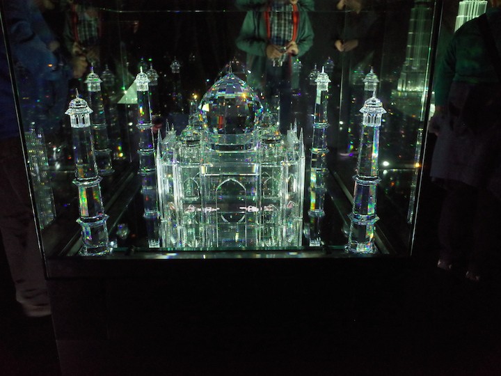 巨人の顔が印象的な入り口から半地下の美術館へ。太陽光を使わないのはクリスタルの輝きを最大限に活かすためでしょうが、半地下展示というのはなかなかのアイデアです。中は16の展示室があり、いろいろなアート作家が作り出すクリスタルな世界が楽しめます。私自身、へぇ〜、ほ〜〜、何やねんこれ・・・てな感じで満喫しました。