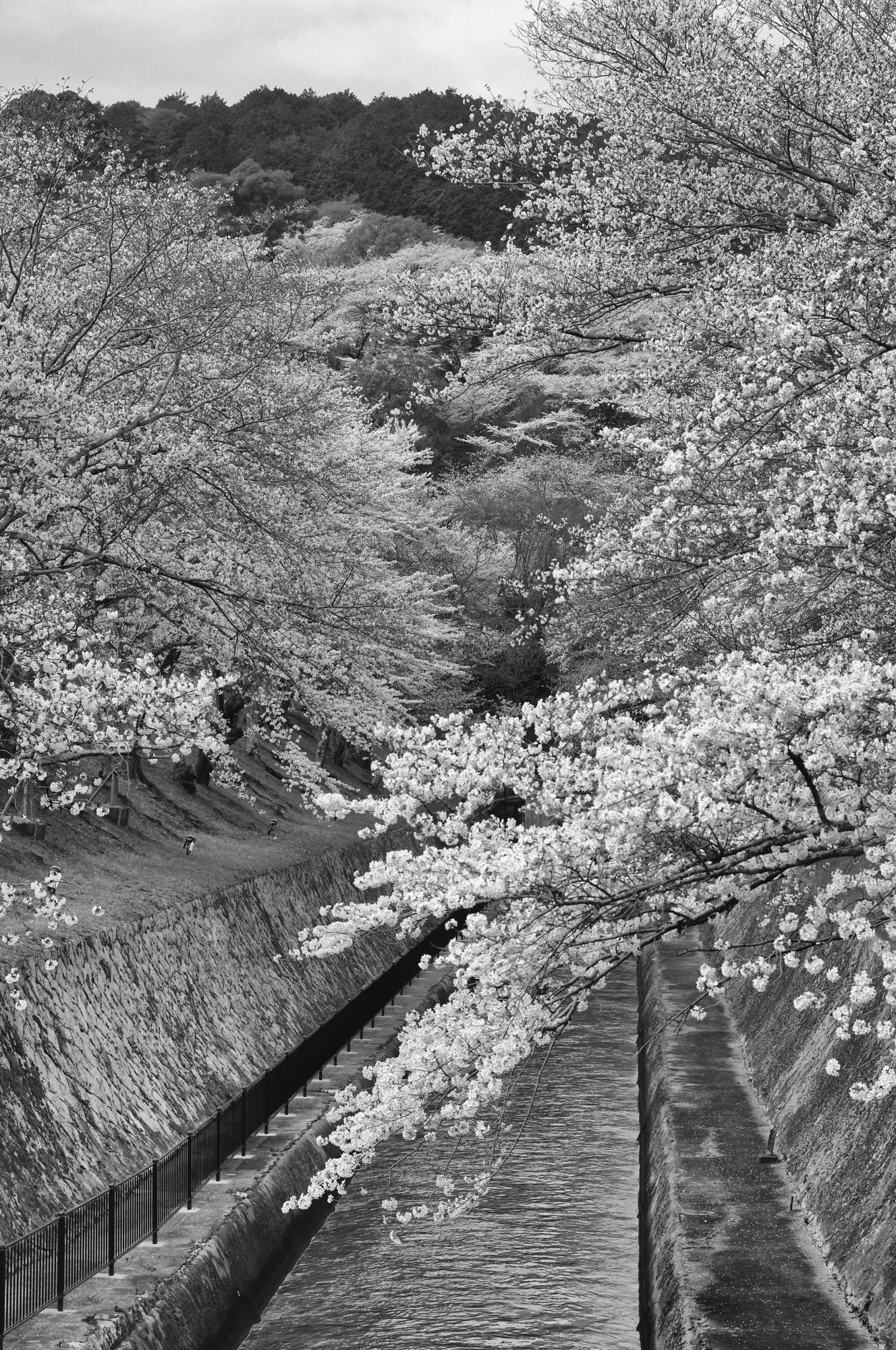 桜は写真に撮すのがなかなか難しい。白からピンクの淡い色合いの花びらは焦点をどこに合わせたらいいのか、はっきりしない。露出は難しいし、曇天では花のコントラストがとりにくい。私は毎年悩みます。記録として残すならともかく、桜の印象を写し留めるにはどうしたらいいのか。あれこれ考え、モノクロにしてみるとイメージ的に結構いけそうな感じがしてきました。