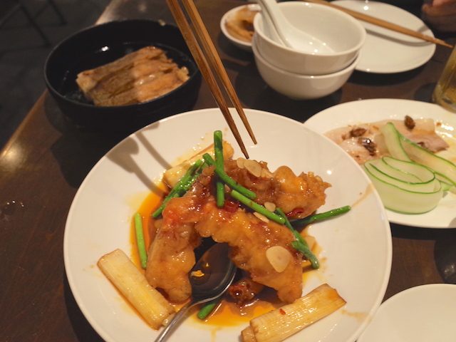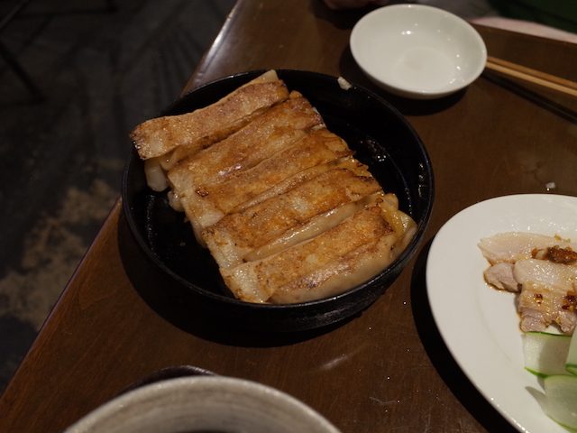 お勧めは鉄鍋餃子。皮が薄いので糖質制限な私にもオッケイ(ということにしておきます)。また、前菜が豊富なので2,3つ注文すればそれだけでお酒が進むところもマル。特に蒸し鶏がオススメです。