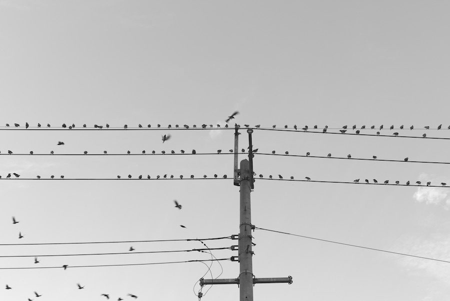 むくむくむく 2016/10/26 .foto うるさいので上を見上げるとムクドリが電線ごっこ。仲良いのもいればケンカ腰なのも。イス取りゲームですね。(2016/10/18、大津市堅田にて) 傲慢はどちら? オーディオはすっかり様変わり