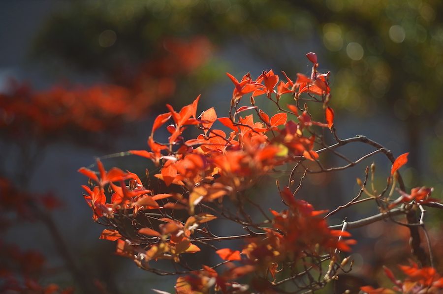 アントシアニン 2016/11/19 .foto 寒くなると緑のクロロフィルが壊れ、アントシアニンの赤みが表出する、これが紅葉の理屈。年によって樹木のナリや寒さの勢いが違うので毎年雰囲気が変わってきます。それにしても今年の赤はいい。旬を楽しめる毎日に心から感謝。 どうだんつつじ 2016 その2 モネの眼