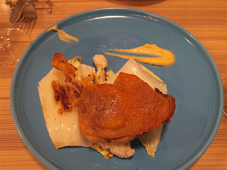 そのアスペルジュ・ブランシュは、糖質制限を薦める高雄病院の江部先生紹介の「京都市の糖質制限OKレストラン」の中の一軒です。烏丸五条なので地下鉄五条から徒歩数分です。興味津々で出かけると、店先から内部までまるでパリのビストロ。アラカルトの食事はなかなか手が込んでいるし、とくにコンフィは特筆もの。おまけにワインも美味しくリーズナブルなものを取り揃えているとくれば何をかいわん。