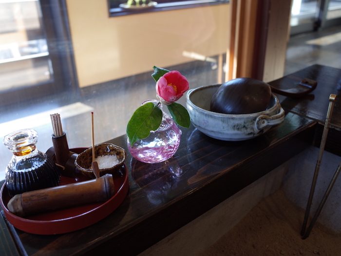 日本旅館の朝食はお膳にいろいろ惣菜が並べられ、味噌汁や焼き魚、卵等にご飯がついてくるというのが一般的。ふらりさんの朝食もそんな感じのラインアップです。