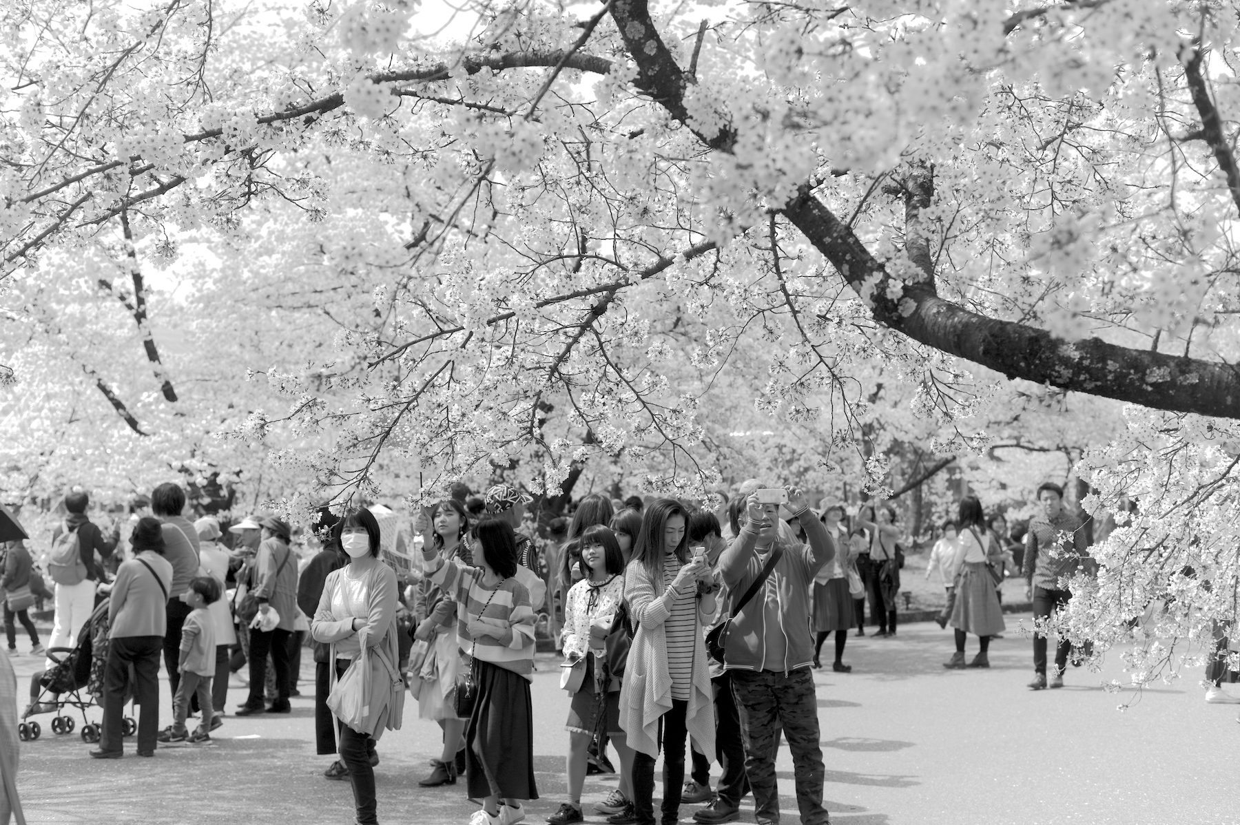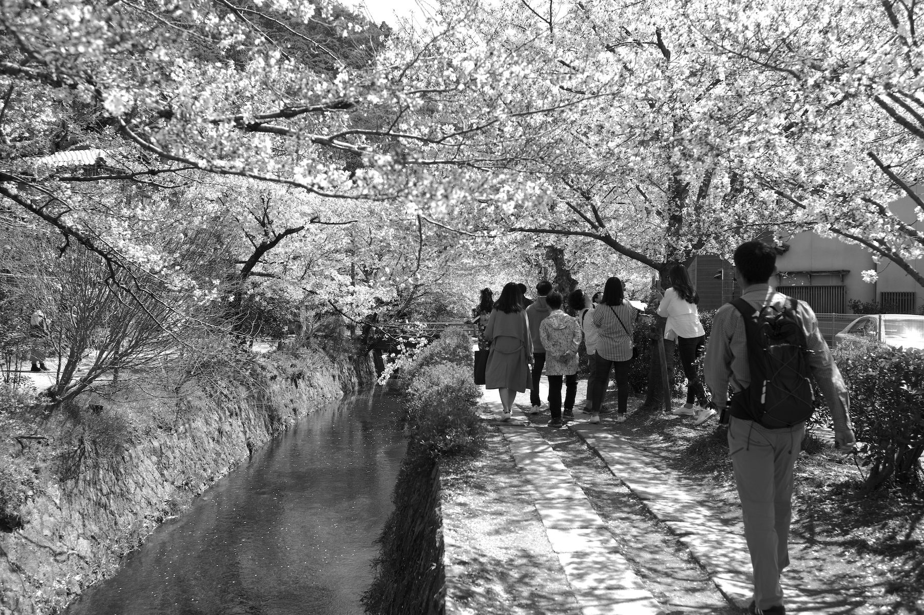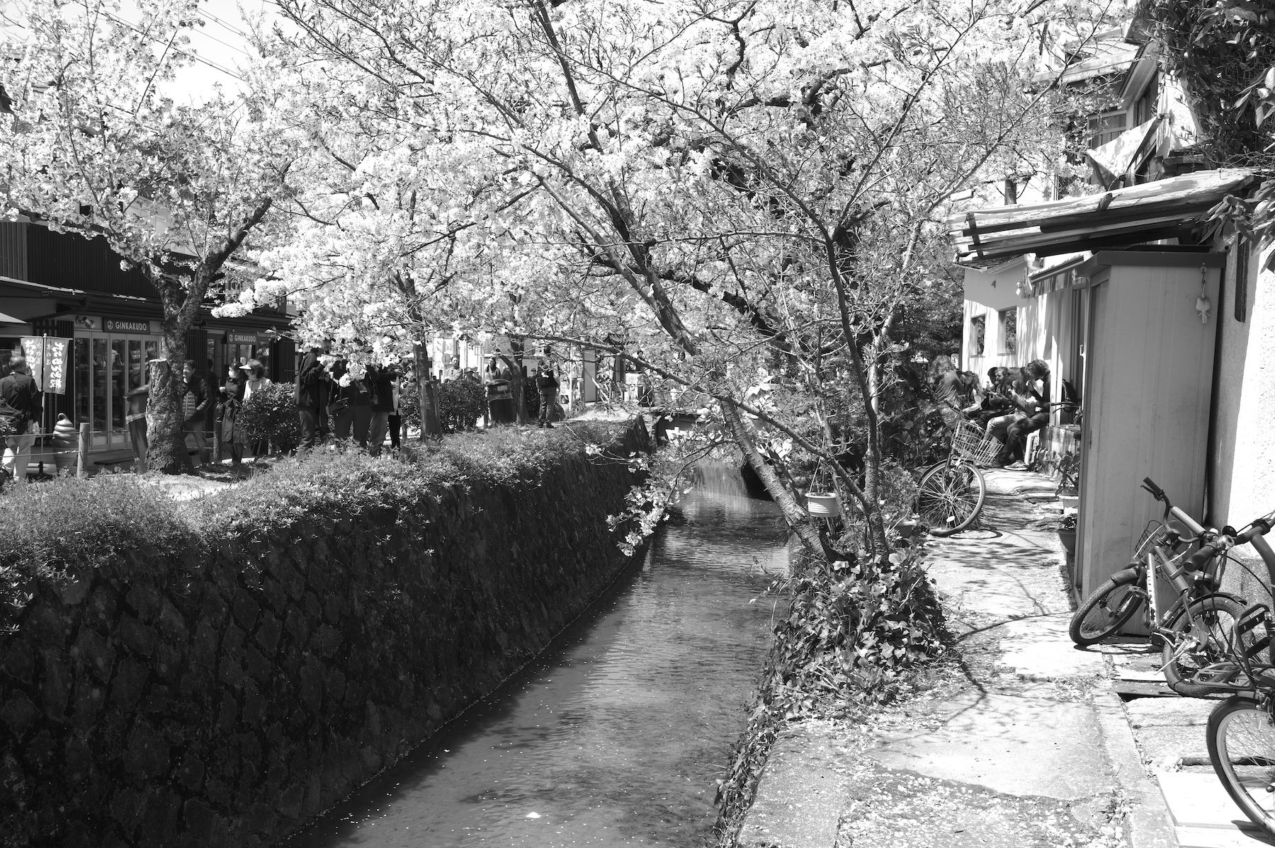 京都の桜 2019 2019/04/19 .foto 京都の植物園は桜を愛でる人でいっぱい。(2019年4月7日) 天候の寒暖の妙なのか、今年の桜は長く楽しめました。こんな年は珍しい。 芝生の中で歌会・宴会やってもお咎めなし。桜の季節のサービスなのでしょうか。 大きな桜はまるで巨大なサーカスのテントです。 毎年心から桜を楽しめる、そんな未来であってほしいもの。 それにしても桜の花はボンボンみたい。 色合いよりも形態で観る方が印象には残り易い。 場所は変わって、哲学の道。(2019年4月13日) 和服で楽しむ人もちらほら。 和服の日本人に是非いっしょに写真に入ってほしいと懇願する外国人の気持ちもわかる。 カフェの外壁の椅子には経済観念しっかりの外国人がいっぱい。 それにしても桜は美しい。これから暖かくなる時の流れを感じさせるのもマル。 動物園から鴨川に続く疎水べりも桜の名所。正面は東山、左手は踏水会。 今年2019年の京都の桜を少し紹介しましょう。全部モノクロなので色合いはご想像でよろしく。 枝垂れの幸 散りてもなお咲く…ra