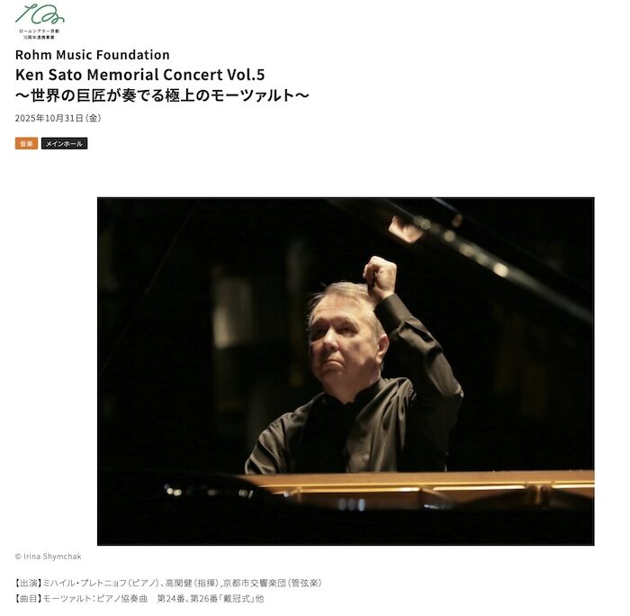 そのプレトニョフさん、いったいどんなピアノを弾くのか興味津々だったところ、たまたま内田光子さんのリサイタル時の折り込みチラシで京都で演奏会があることを知り、何とか席をゲット。そして10月末に京都ロームシアターで初めてライブで聴きました。