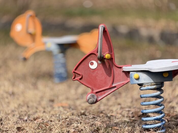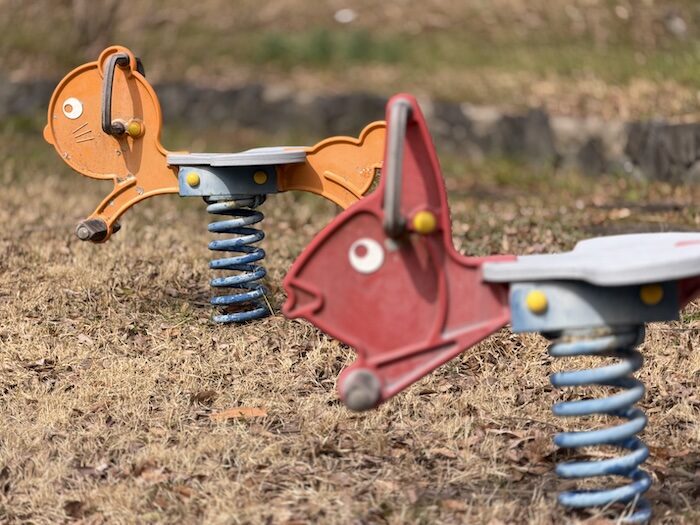 iPhoneの写真アプリで左後ろの遊具にピントを移動させました。